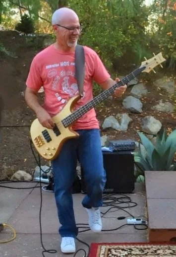 Glen began playing piano, saxophone, and guitar as a young boy growing up in Ridgecrest, California, a remote town in the middle of the Mojave Desert. He joined his first band as a keyboard player and rhythm guitarist at age 15 and remained active in local bands until he left for college. At Fresno State, he played tenor saxophone in the university’s jazz band but still yearned to play rock and roll. When he had an opportunity to join a rock band as a bassist during his sophomore year, he borrowed a bass guitar, purchased an amp for $100, and was immediately hooked. Since then, Glen has played bass guitar for numerous bands in Fresno and, more recently, in San Diego. Glen is excited to provide that link now for Sonic Tonic.
